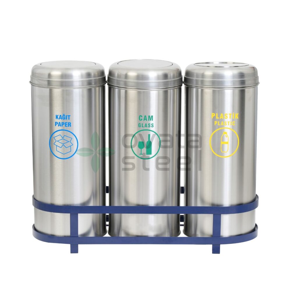 Ovata-501 3’lü Paslanmaz Sıfır Atık Kutusu (Hazneli)